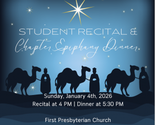 YOU'RE INVITED!!! Member Epiphany Dinner and Student Recital January 4, 2026, Recital at 4 PM and Dinner at 5:30 PM Event Address: First Presbyterian 525...