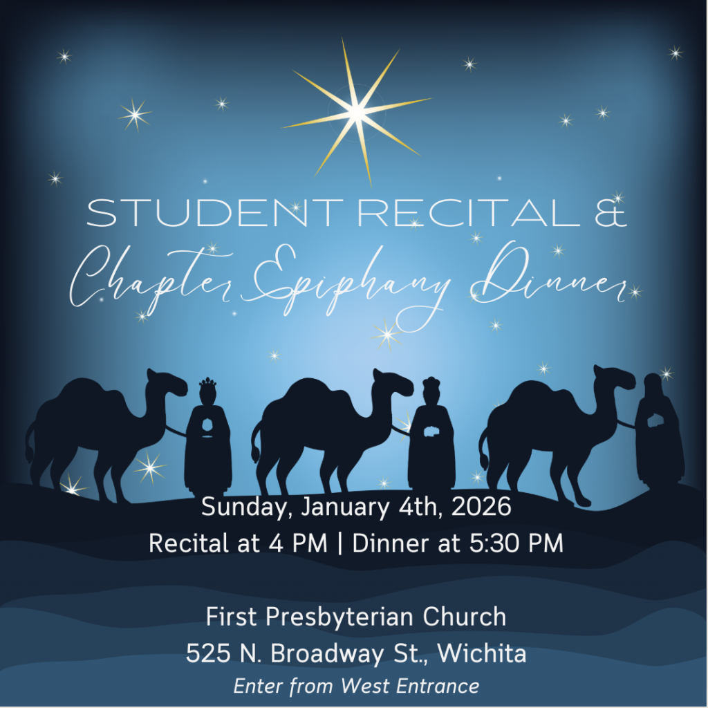 Come “crawl” and play the pipe organs of both St. Mark the Evangelist Church 19320 W. 29th N (Hinners mechanical action) and Sacred Heart Church 311 S 5th St Colwich KS. (Estey + additions). Both organs have recent restoration by WAGO member/organ technician Luke Headley and are housed in lovely older church of excellent acoustic. Young organists are excited for opportunities like this and everyone is welcome for this hands-on opportunity.